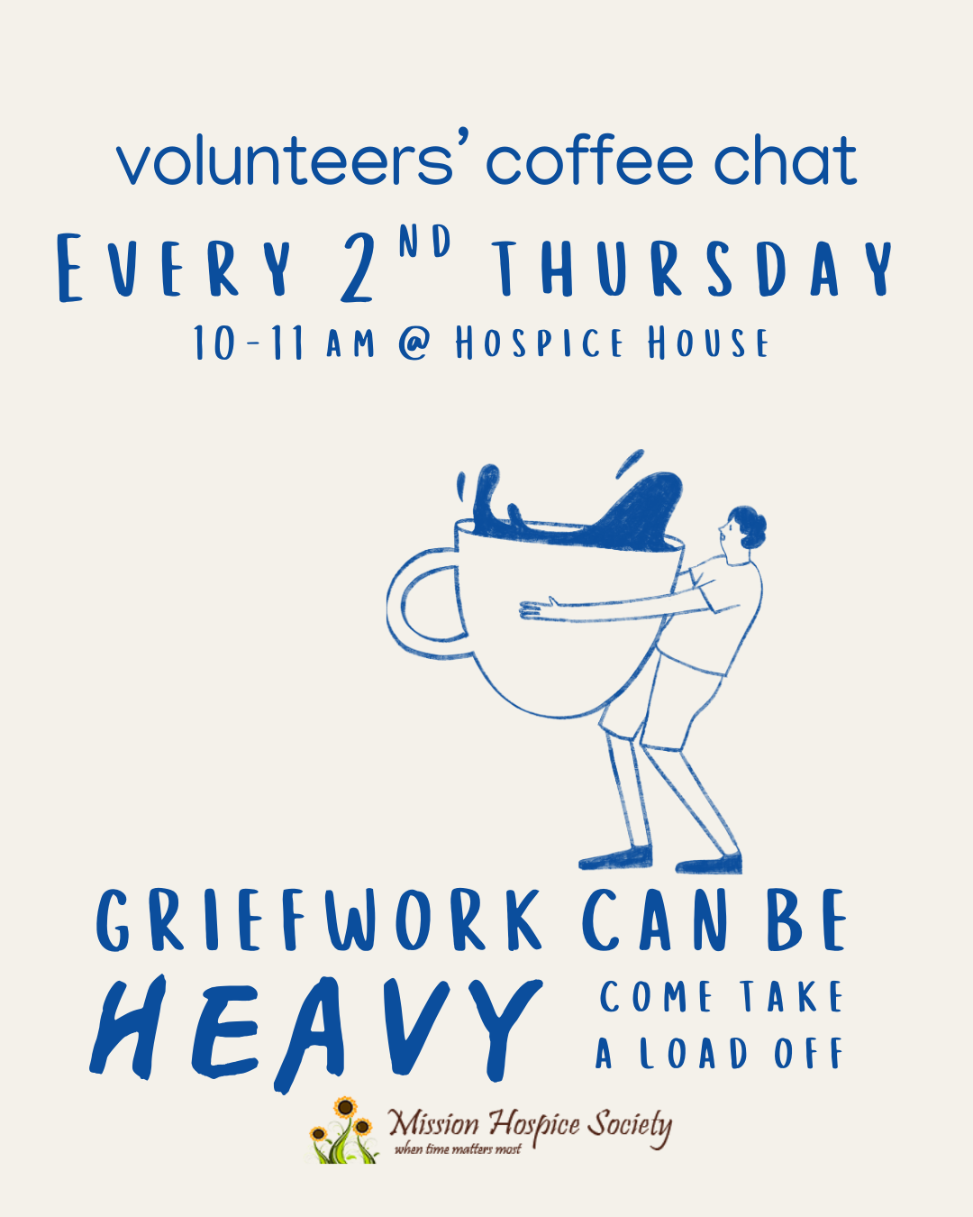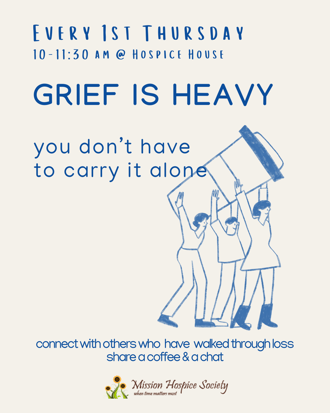Mission Hospice Society offers free, compassionate bereavement support to anyone in the Mission community coping with the loss of a loved one. Whether the loss was recent or something you’ve carried for years, we’re here to support you on your healing journey.