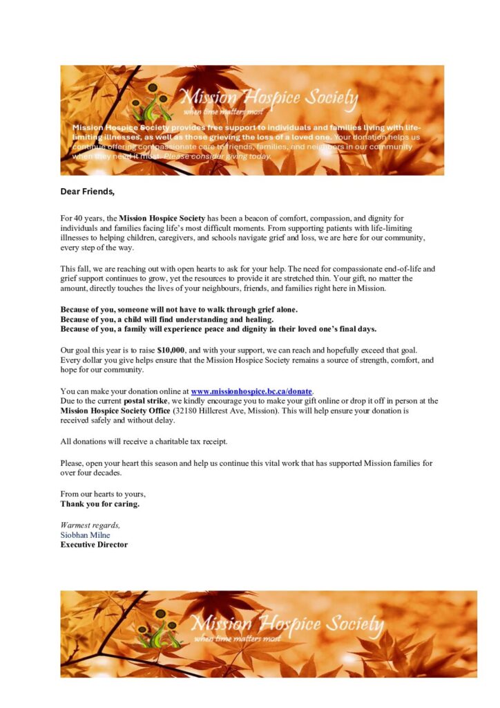 Mission Hospice Society is a community-based, charitable organization dedicated to supporting individuals and families through the challenges of terminal illness, end-of-life care, and grief. Donate Now
