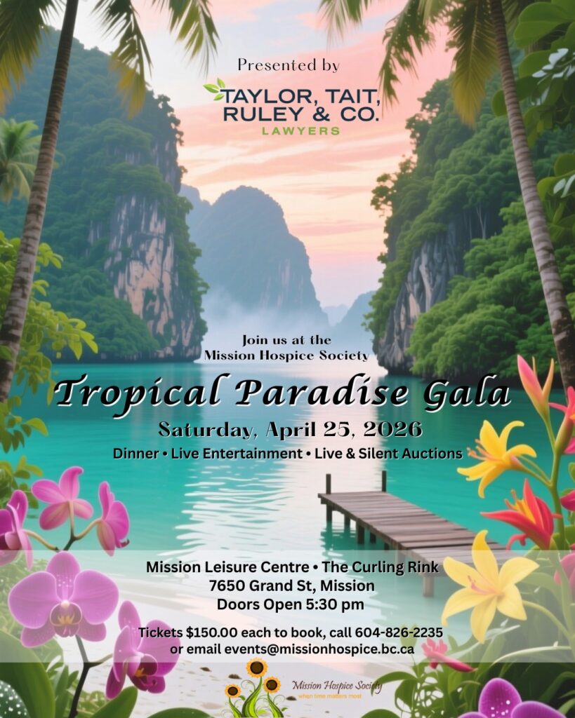 To sponsor the event or for ticket information, please contact events@missionhospice.bc.ca.