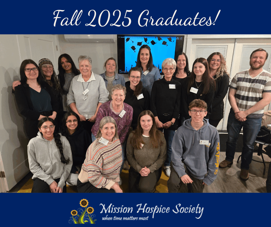 Mission Hospice Society volunteers are compassionate community members who bring their life experience, unique skills, and heartfelt care to every visit. The greatest gift they offer is the gift of time, a calm, patient, and steady presence during life’s most emotional and vulnerable moments.